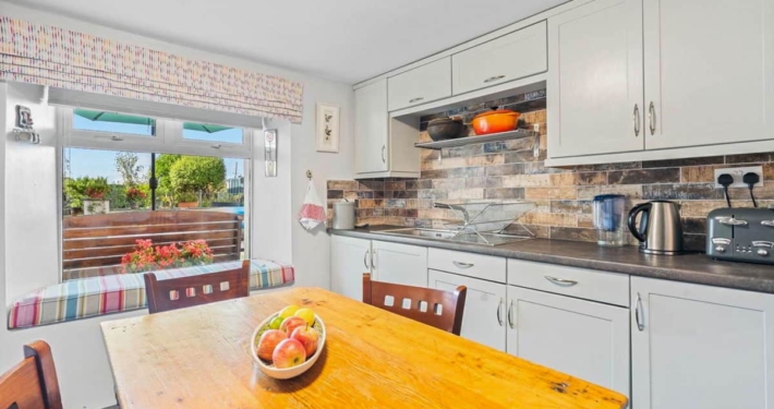 Within a few hundred metres you have a fantastic children’s playground, a tennis court, a sailing and watersports school, Belles Kitchen Bistro and several pubs – The Beachcomber does bar food. Across from the holiday home is a seafront putting green. The house has a private patio and a large garden to the rear.