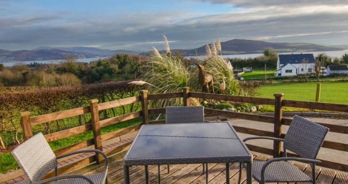Sea View Heights is a spacious 4-bedroom holiday home on an elevated site overlooking Lough Swilly on the outskirts of the seaside village of Rathmullan. Nestled into a hillside above the village the holiday home enjoys panoramic views over Lough Swilly towards the hills of Inishowen and Inch Island. The views are equally impressive at night with the lights of Lisfannnon and Fahan shimmering on the lough.